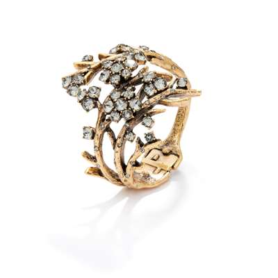 modelled as stylised foliate branches, set with various pastes throughout, hinged design