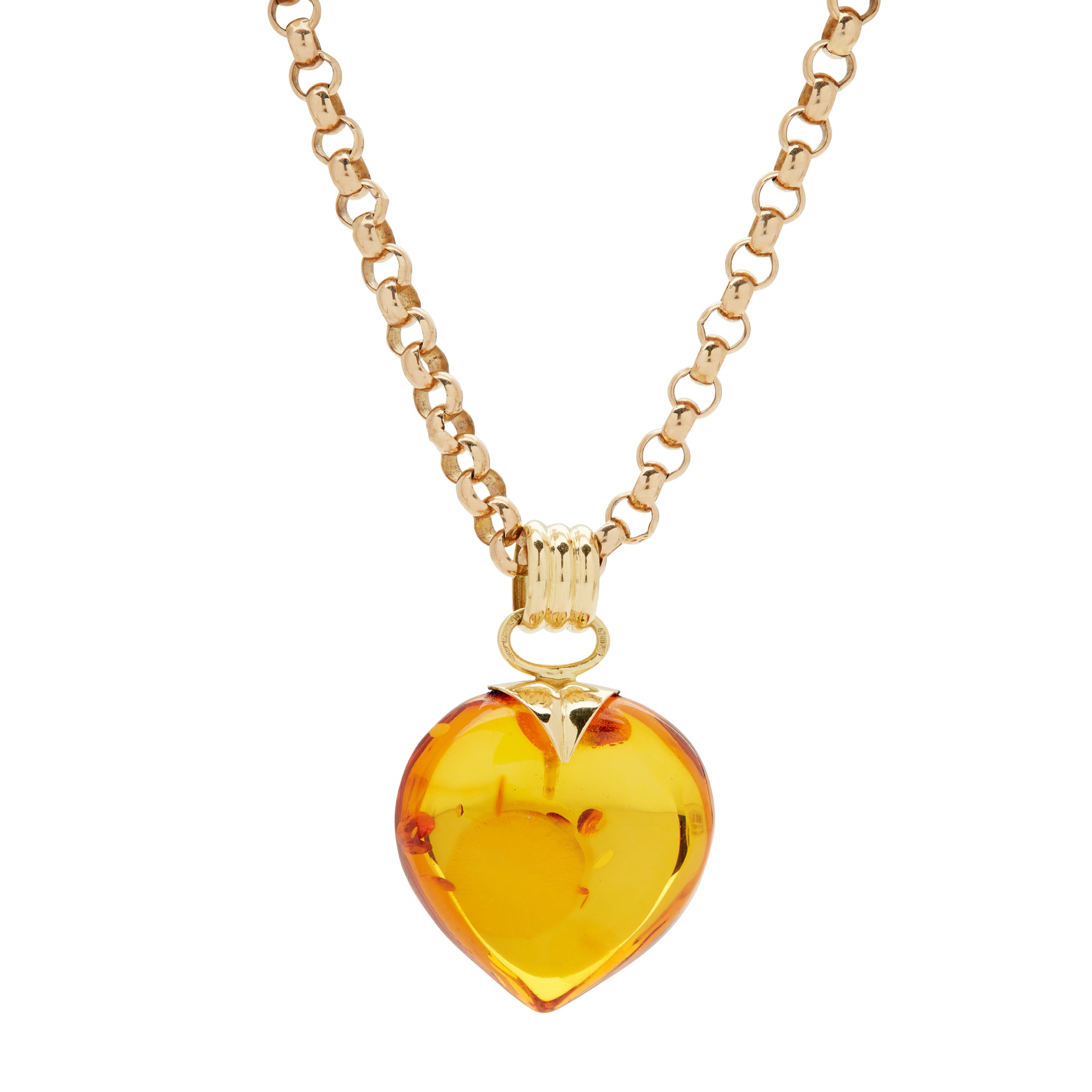 the polished amber pendant to a plain bale, suspended from a belcher link chain