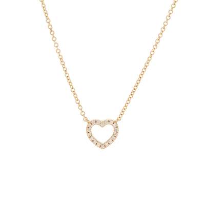 the heart-shaped pendant set with small round brilliant-cut diamonds, to an integral 18ct yellow gold trace-link chain; with original black suede box and outer cardboard box