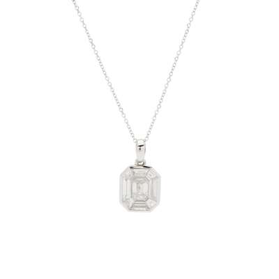 set with an emerald-cut diamond in a border of baguette and tapered baguette-cut diamonds, to a trace link chain, stamped 750