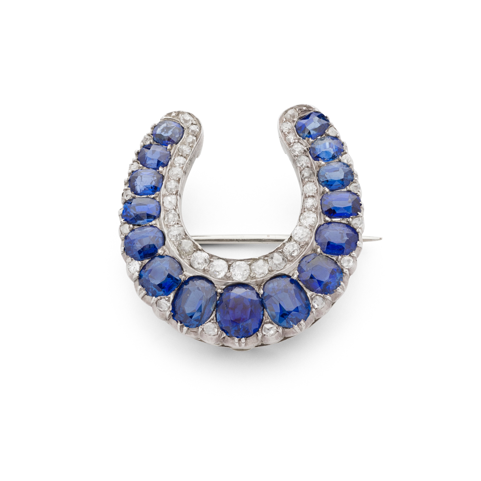 set with a graduated row of oval and cushion-cut sapphires, a row of old round and eight-cut diamonds and rose-cut diamond detail, unmarked