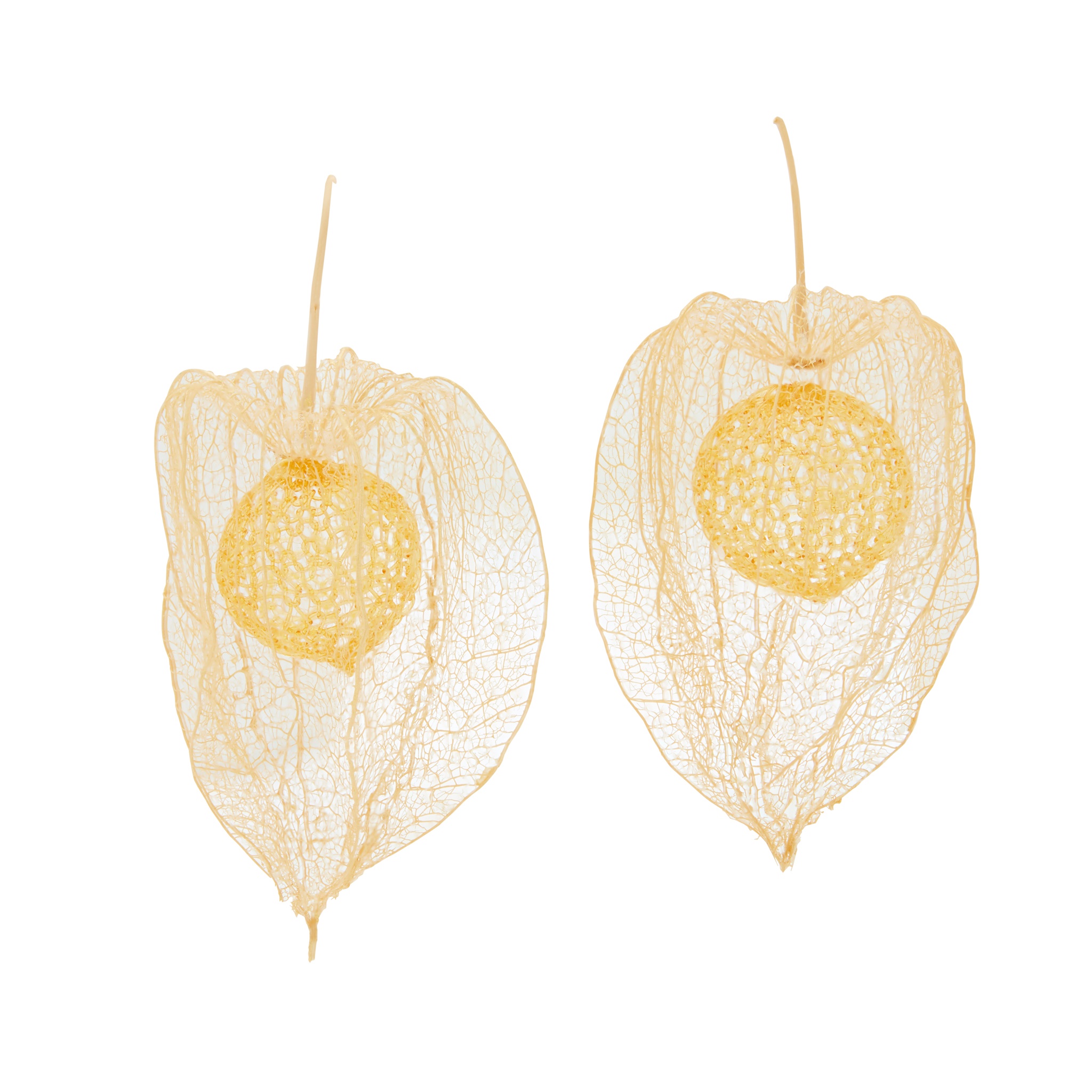 modelled as skeletonized physalis shells in knitted nylon