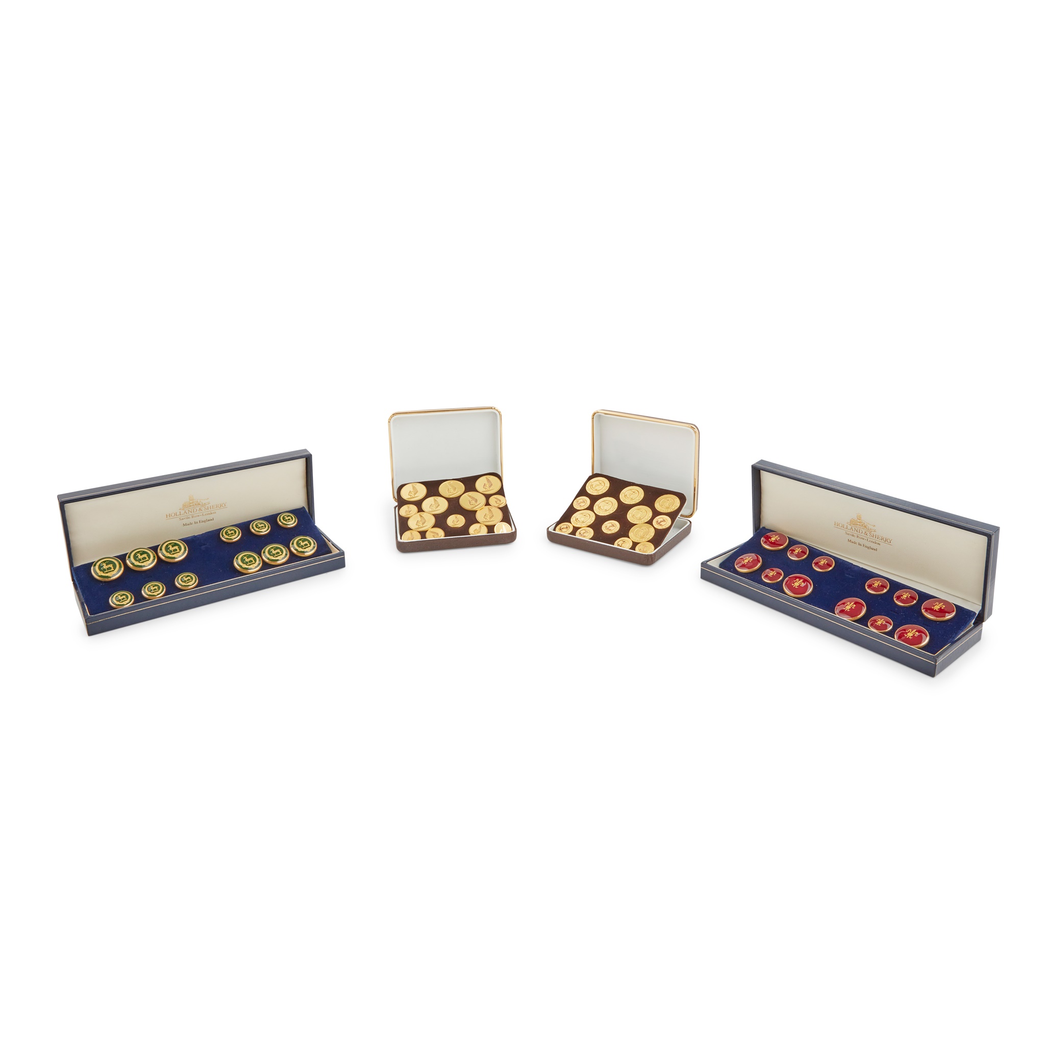 to include two cased sets by Holland & Sherry with enamelled detail, and two cased sets with anchor or windsurfer detail