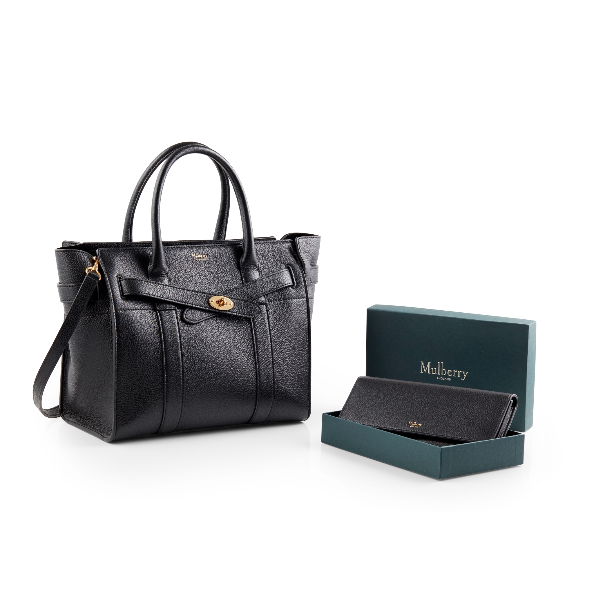 black leather, classic postman gilt lock, with original dust bag, and carrier bag; together with a black leather 'Continental' wallet, Mulberry, with original box