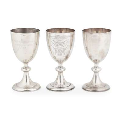 James Dixon & Sons Ltd, Sheffield, 1879, each of goblet form, with engraved inscription to each body 'U.P. Congregation, Junction St, Leith 1880’, with knopped stems and circular foot