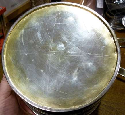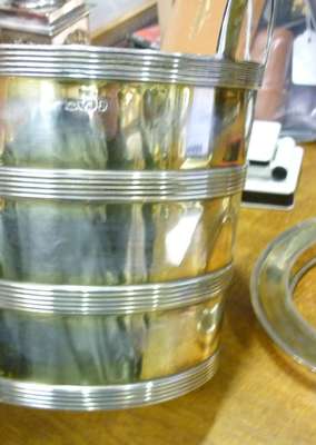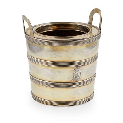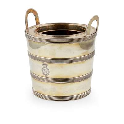 William Brown, London 1824, of tapering form, ribbed bandings, engraved with Garter and crest with a ducal coronet, plain handles, wire inner frame, removable rim