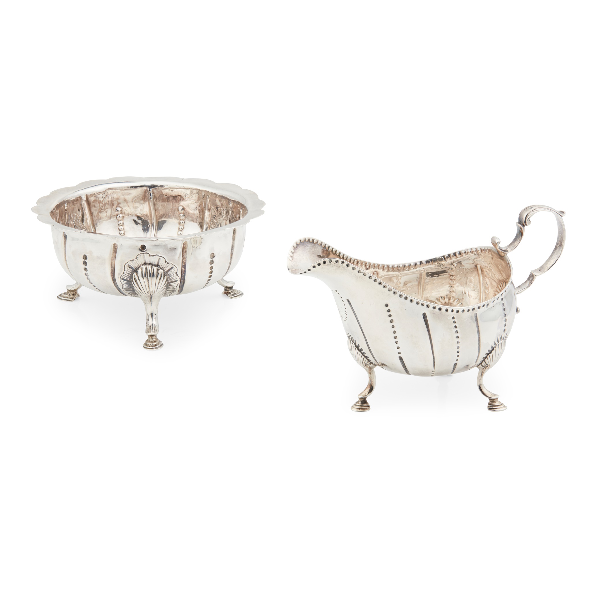 Matthew West, Dublin 1817, of traditional round spiral fluted form, embossed floral detail, all raised on scallop clasped cabriole legs and hoof feet; together with a milk jug of similar design
