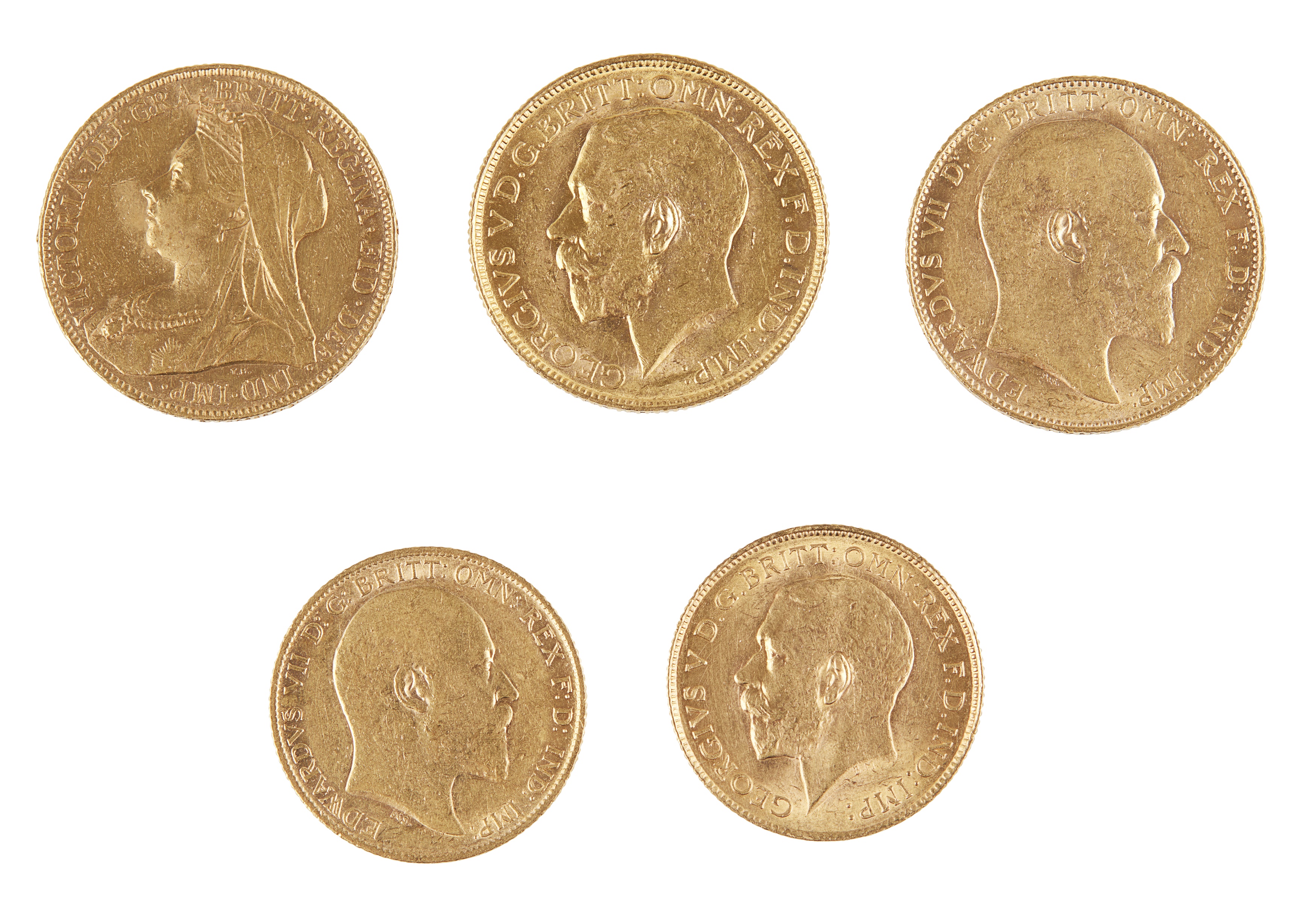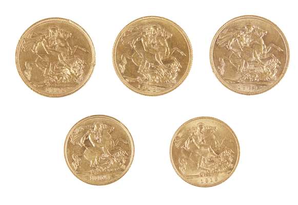 sovereigns 1909, 1918 & 1989 VH, half sovereigns 1908 & 1913