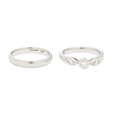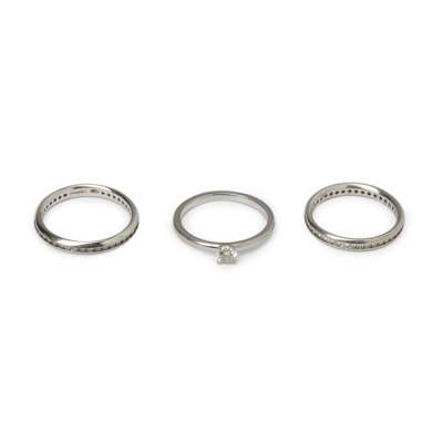 Three platinum and diamond set rings