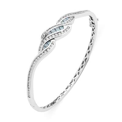 A contemporary blue and colourless diamond set bangle