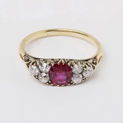 A ruby and diamond cluster ring