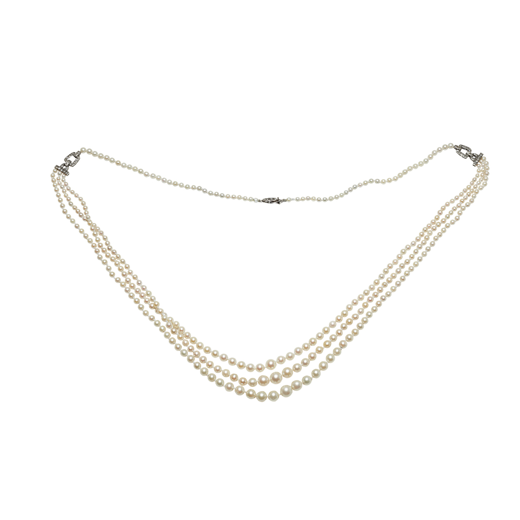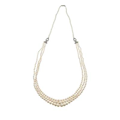 A pearl and diamond set necklace