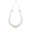 composed of three rows of graduated cultured pearls, with two tapered links of open angular design set with eight cut diamonds, suspended from a single row of cultured pearls, the clasp set with small eight cut diamonds, stamped 6178K