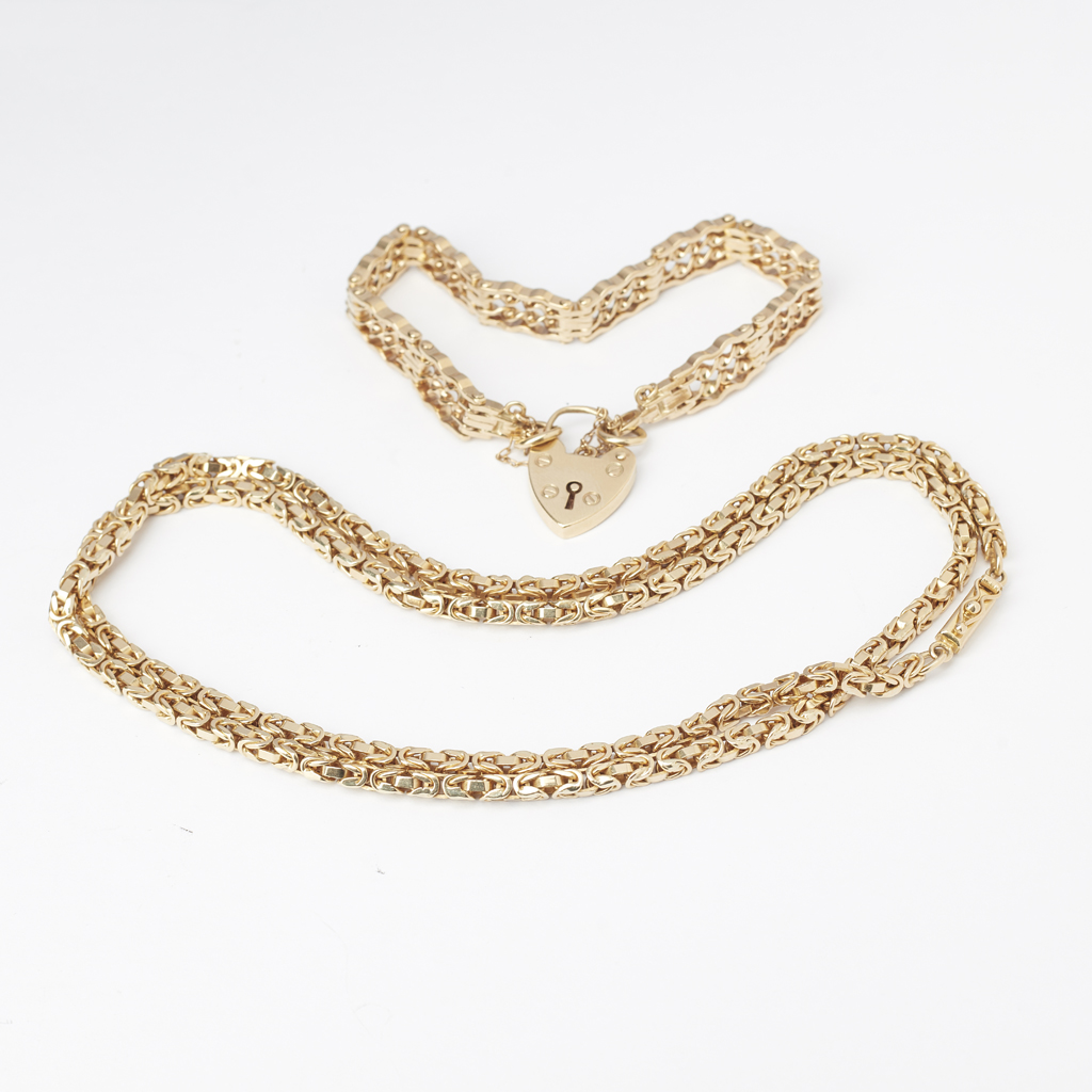 together with a 9ct gold fancy link bracelet to a padlock clasp (2)