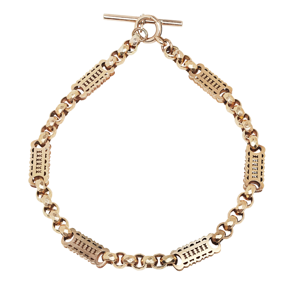 apparently unmarked, composed of alternating curb links and pierced rectangular links, with T-bar suspension