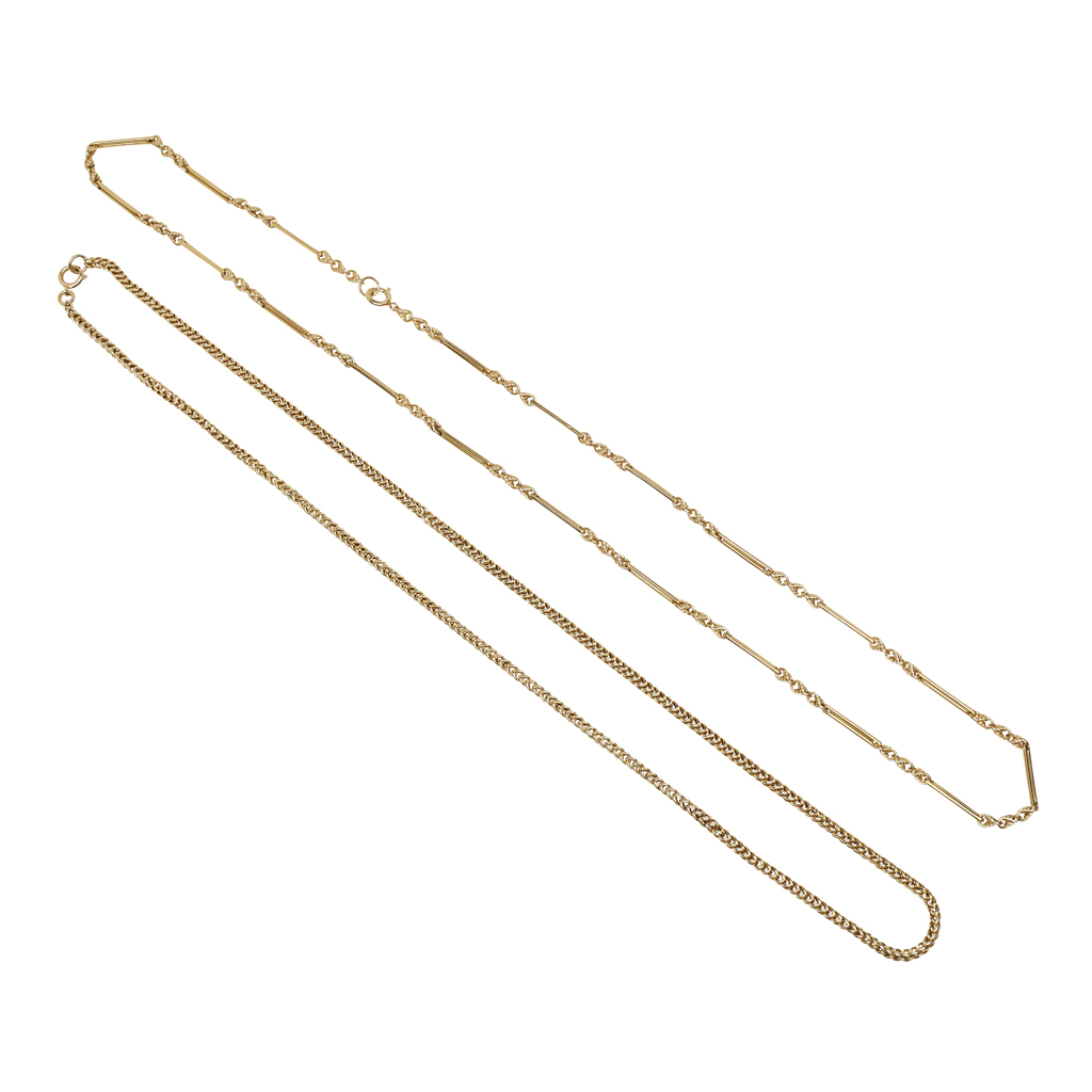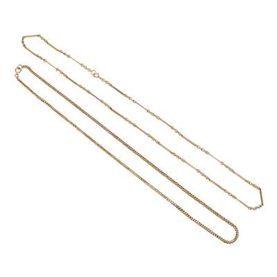 of traditional design, stamped 9ct; together with an unmarked, double curb link chain (2)
