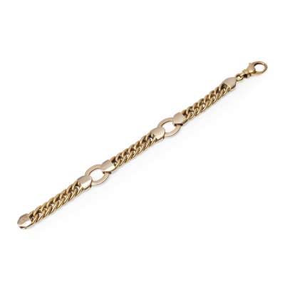 composed of curb links with large oval link spacers, to a lobster-type clasp, stamped 750
