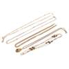 to include a 9ct gold fancy link chain, 9ct gold chain set with tiger's eye spacers, a fetterlink chain stamped 9ct, a gem set pendant and chain, a (broken) belcher link chain stamped 9ct (5)