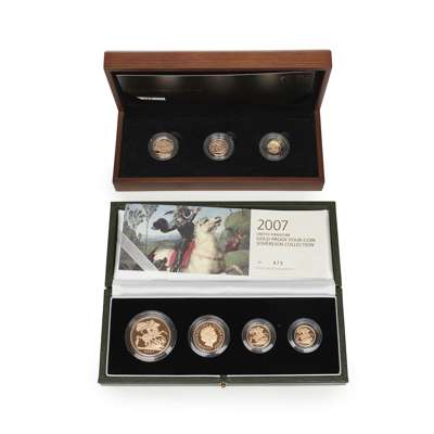 2007, £5, £2, sovereign, half sovereign; 2013, sovereign, half and quarter sovereign (2)