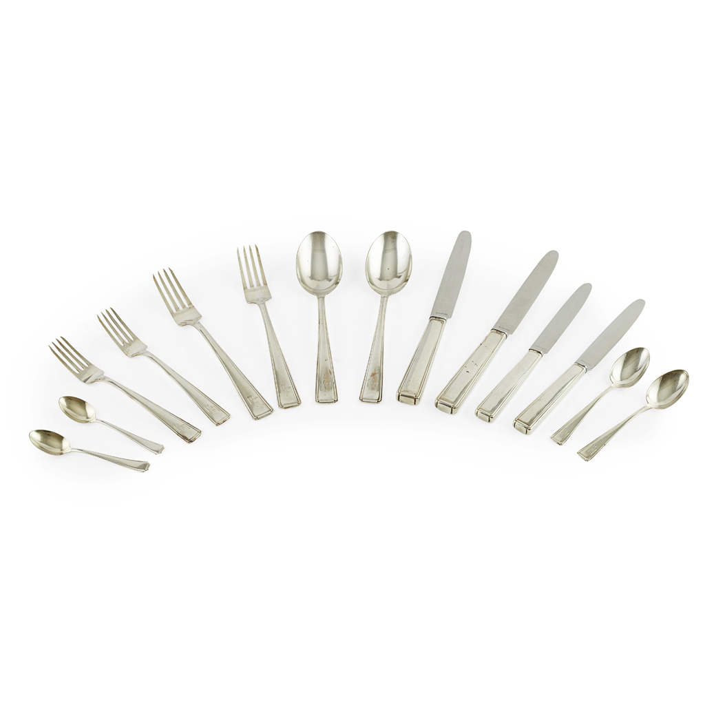 marks for Germany 800, comprising six table forks, six desert forks, six table spoons six coffee spoon, six teaspoons and 12 silver handled knives (42)