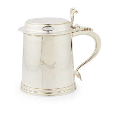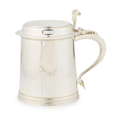 A George II style lidded tankard with feature hallmarks
