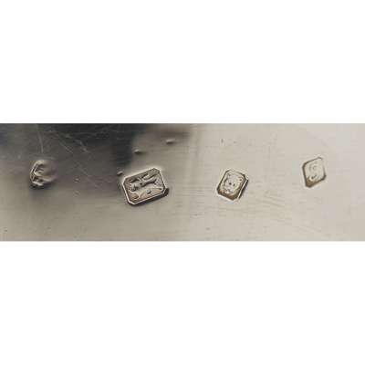 London, 1973 of traditional design, plain slightly tapered body, leaf clasped scrolling thumbpiece, plain flat cover, scroll handle, stepped base