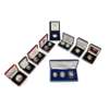 2004, Piedfort set of three coins, £2, £1, 50np; 1990, Piedfort 5np; 1999, Piedfort World Rugby Cup (hologram) £2; 1982, Piedfort silver proof 20np; 2004, proof silver £2 coin; 1990, two sets of silver proof two coin set, old and new 5np; 1992, proof silver two coin set, old and new 10np; 1997, golden wedding £5 coin (9)