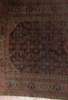 the indigo field with central ivory lozenge medallion and all over herati pattern, ivory spandrels, within green palmette and scrolling vine border between bands