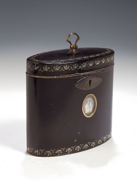 A George III black lacquer tea caddy
