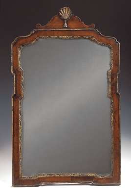 of Georgian style, the shaped rectangular plate in moulded frame with shell surmount