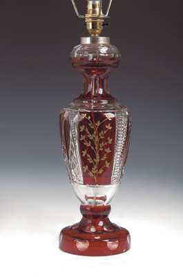 A Bohemian red flashed cut glass table lamp