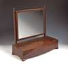 the rectangular plate in strung frame, between reeded rectangular columns with brass urn finials, the D-shaped base with two hinged lids enclosing a compartmented interior, on ogee bracket feet