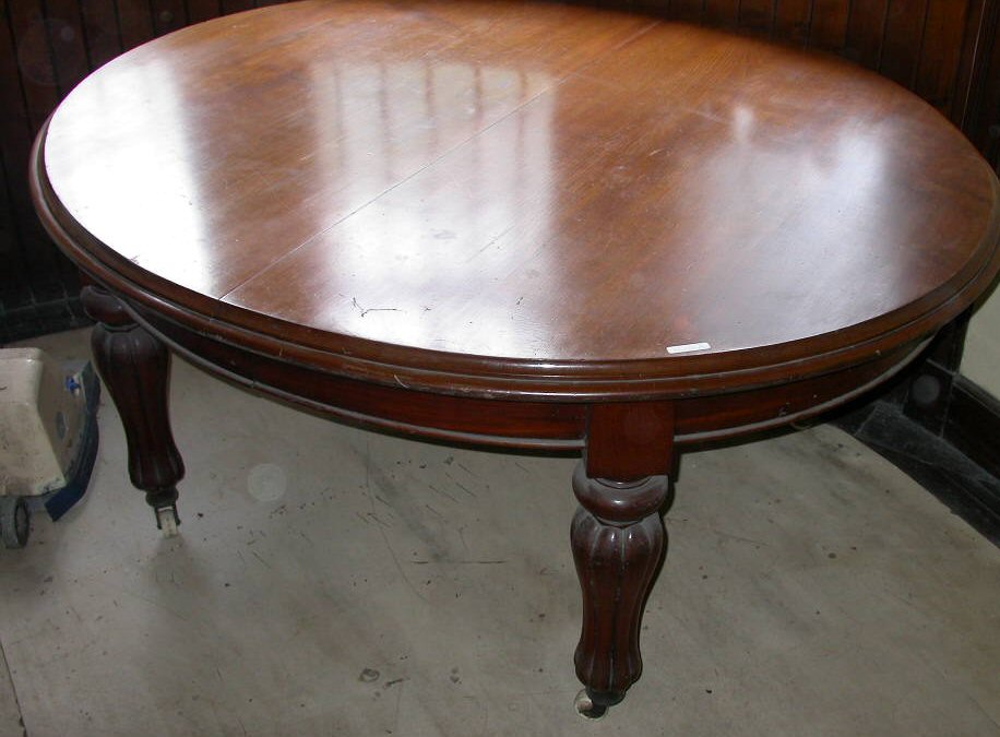 the moulded oval extending top (lacking leaves), on reeded baluster legs with ceramic castors