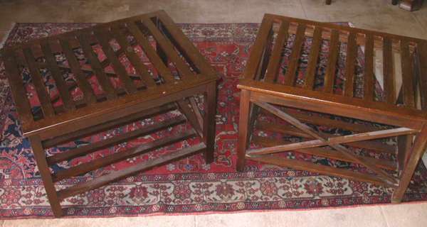 A pair of mahogany luggage stands,