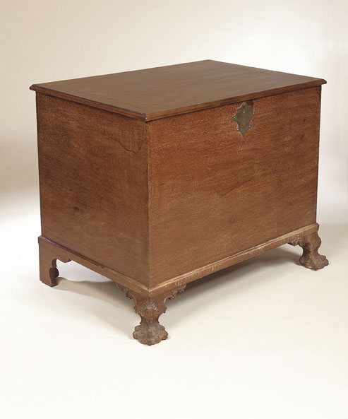 of George III style, the hinged rectangular top above a plain front, on earlier hairy claw and ball feet