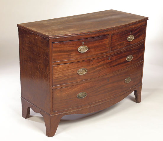 the D-shaped top above two short and two long drawers, on splayed bracket feet