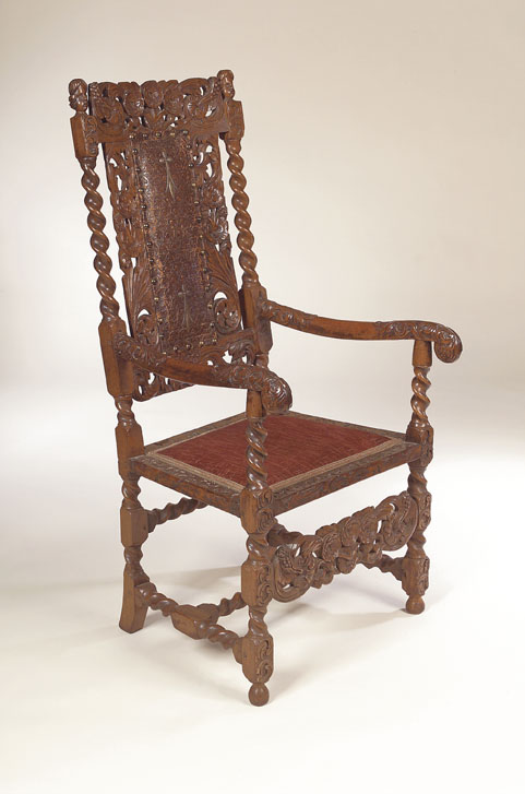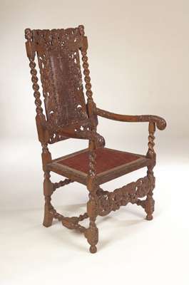 A Charles II style walnut open armchair