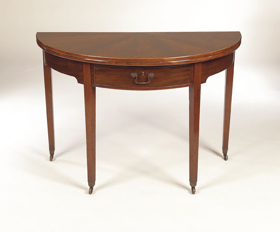 A George III mahogany demi-lune foldover tea table