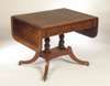 with satinwood crossbanding and boxwood stringing, the rectangular top with rounded angles above two frieze drawers and pair of ring turned baluster supports, on concave rectangular base with sabre legs, cast paw caps and castors