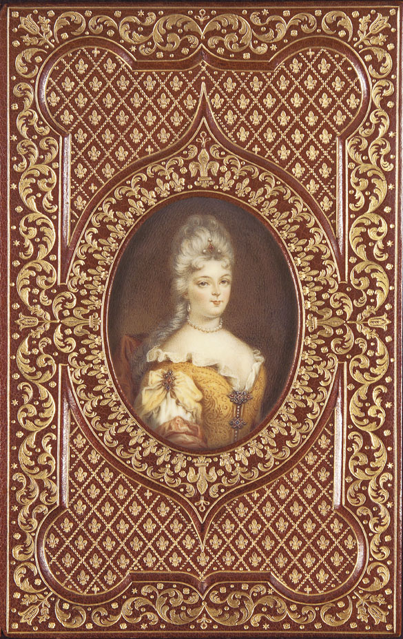 Madame de Maintenon ... 1st edition, port. frontis. and other plates, Cosway binding of elaborately gilt and impressed brown crushed morocco decorated with scrolls and fleurs de lys, the upper and lower cvers with watercolour on ivorine portraits of Madame de Maintenon, spine decorated gilt in compartments, pale blue watered silk endpapers, inner doublures, a.e.g., by Riviere, in its original fleece lined slipcase, London: Dent, 1930