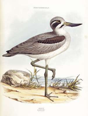 The genera of birds comprising their generic characters, a notice of the habits of each genus, and an extensive list of species … illustrated by David Mitchell … 1st edition, 338 lithographed plates of which 185 are chromolithos finished by hand after David Mitchell and other artists including Joseph Wolf and Edward Lear, full crimson morocco, covers with gilt borders with central panel of gilt filets with fleuron ornaments at the corners and sides containing the arms of ***** , spines decorated gilt in compartments, a.e.g., some patches of spotting (chiefly to the uncoloured detail plates), folio, 3 volumes, London: Longman, etc., 1849