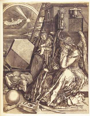 Note: Containing a wide range of examples from various periods with a number culled from Bullart's Academie des sciences et des arts, and including: A print of Durer's "Melancolia" (Vol. 1 p. 282); Hemskerk's "Solomen and Sheba" (Vol. 1. p. 433); A horseman by Cuyp (Vol. 1. p. 499); Rembrandt's "Three trees" (Vol. 2 p. 230) and an aquatint etching of a design for a sundial attributed to Rysbraeck.