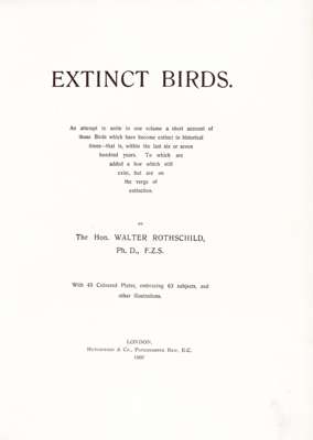 Extinct birds … 1st edition, 45 coloured plates, 4 outline plates, half dark green morocco, green cloth boards, t.e.g., folio, London: Hutchinson, 1907