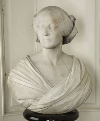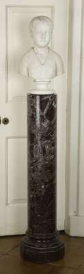 A late 19th century white marble bust of a young boy by Longworth Powers
