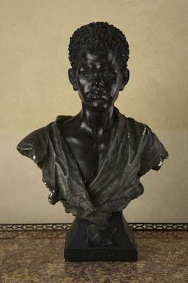 A late 19th/early 20th century Austrian painted terracotta bust of a Nubian boy