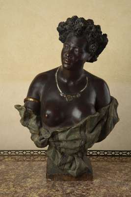 A late 19th/early 20th century Austrian painted terracotta bust of a Nubian Girl