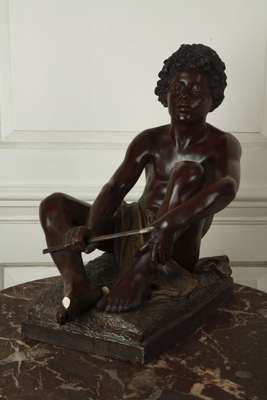 A large 19th century French bronze figure of a Greek soldier, cast by Baredienne