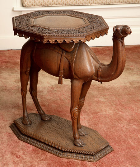 A late 19th/early 20th century Middle Eastern hardwood camel carved occasional table