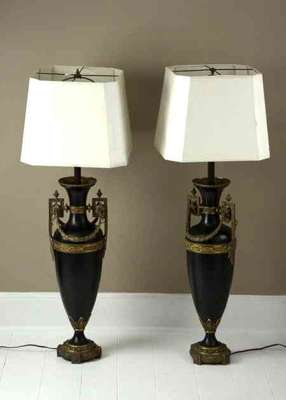 A pair of painted and giltmetal lampbase vases