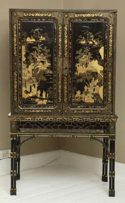 A 19th century Japanese black and gilt lacquer cabinet on stand